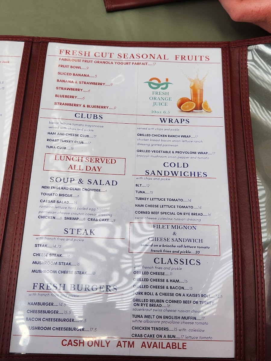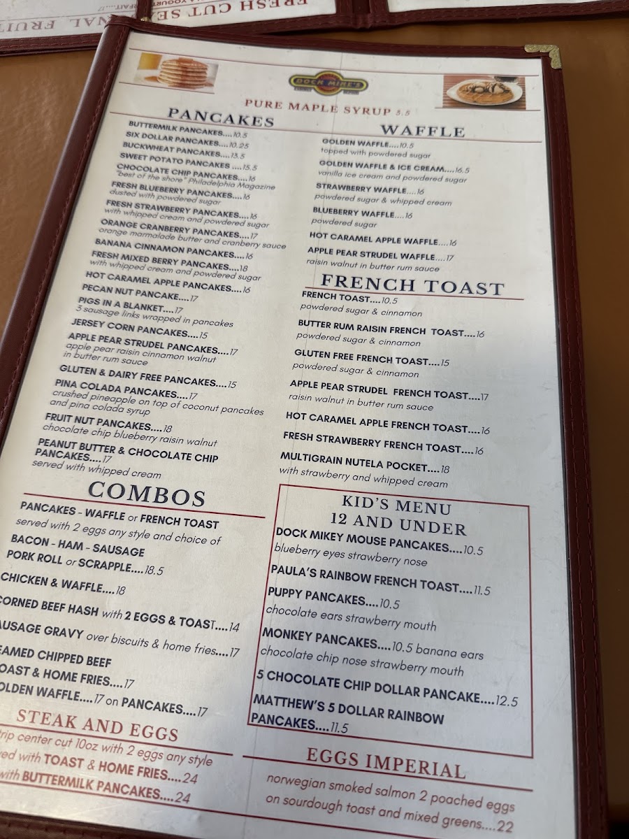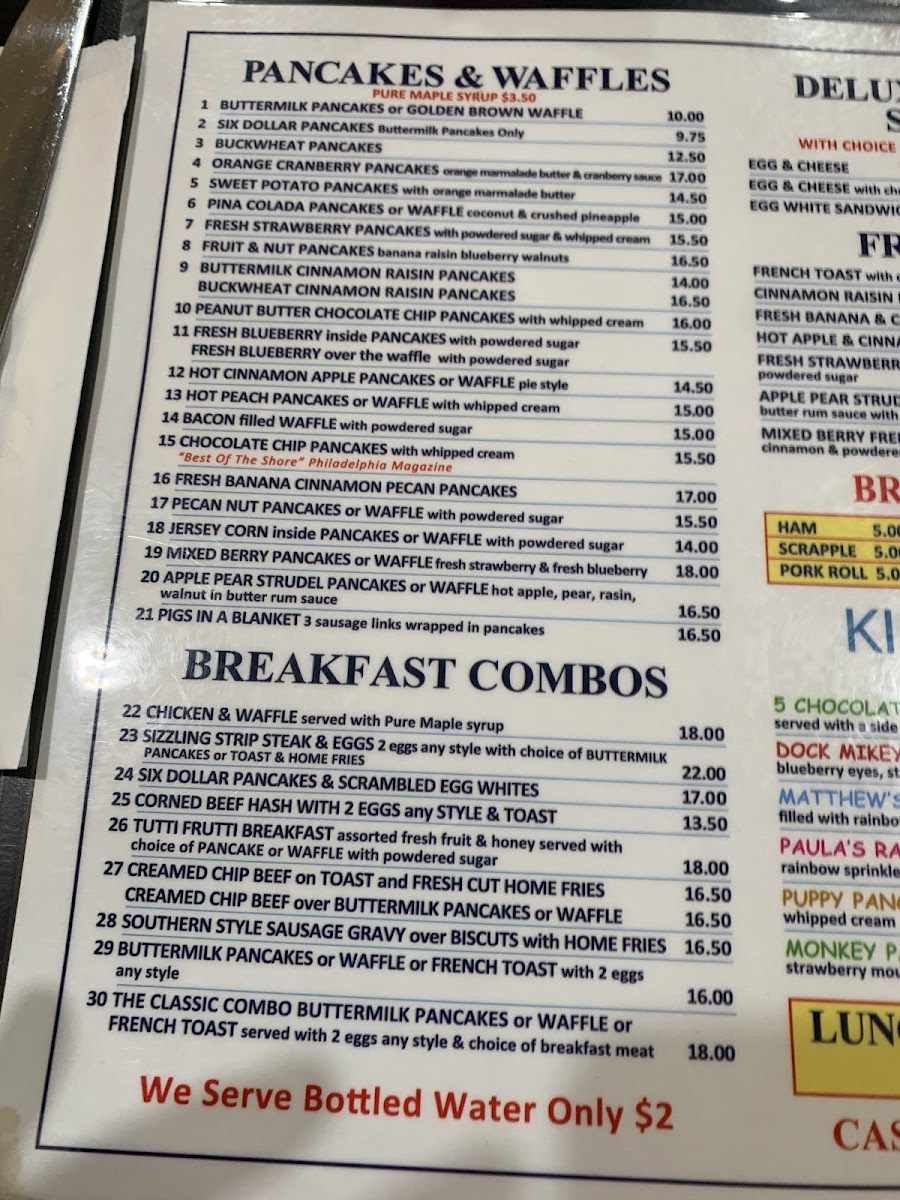 Families will appreciate the thoughtful kids’ selections like Dock Mikey Mouse Pancakes, Puppy Pancakes, and 5 Chocolate Chip Dollar Pancake, while beverage choices-from Iced Coffee, Fresh Brewed Iced Tea, and Fresh Orange Juice to fun docktails like Pina Colada and Shirley Temple-round out the experience. Overall, the menu feels generous, nostalgic, and inclusive, successfully combining variety, comfort, and creativity into a dining experience that caters to all ages and appetites.